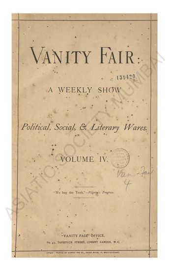 | Publisher | : | Vanity Fair Office, No. 13, Tavistock Street, Covent Garden, W.C. London: Ranken and Co., Drury House, St. Mary-Le-Strand. |