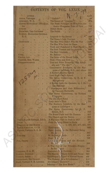 | Subject | : | Politics and Affairs, Index |