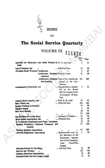 | Subject | : | Social services; education; labour issues; women's rights; industrial disputes; medical relief; guild socialism; prohibition; welfare committees |