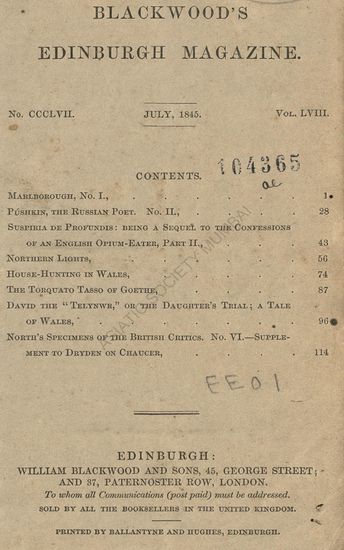 Edinburgh Magazine No. CCCLVII July 1845 Vol. LVIII