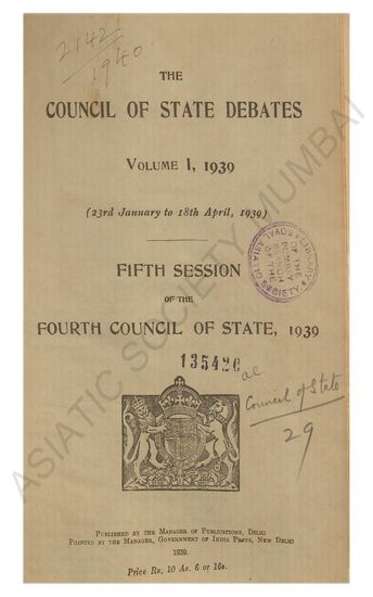 | Subject | : | Council of State Debates, Sixth Session, Fourth Council of State, 1939 |