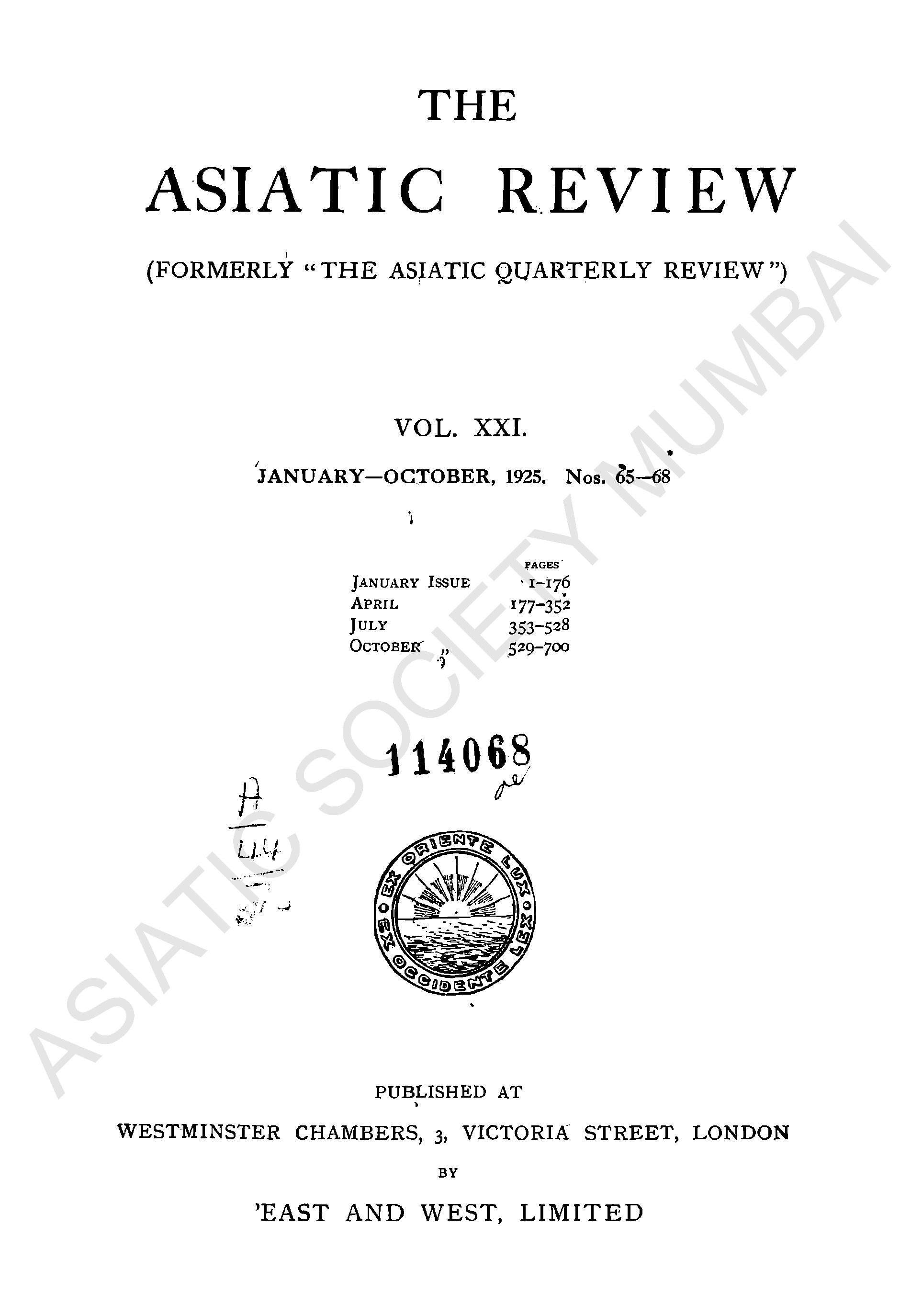 Asiatic review (formerly The Asiatic Quaterly Review). ...