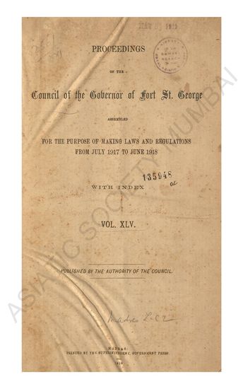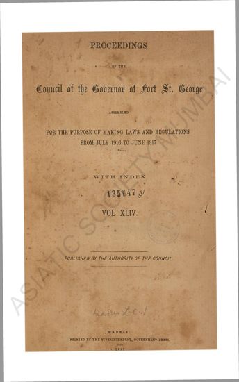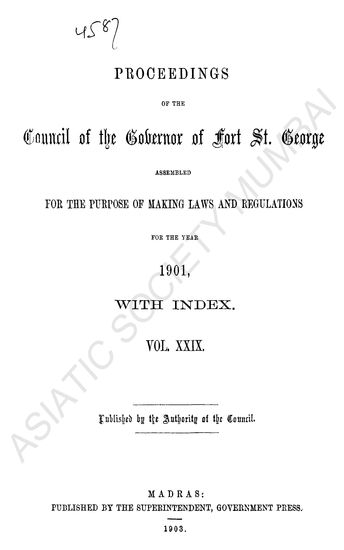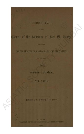 | Subject | : | Procceedings of legislative assembly; Council of the Governor of Fort St. George; Lawmaking process in 1897 |