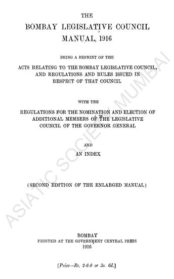 | Subject | : | The Government of India Act and the rules thereunder for the Bombay Legislative Council |