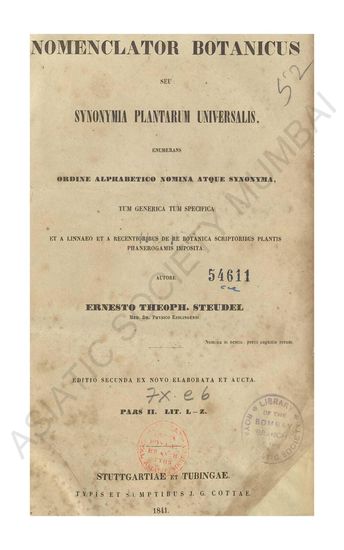| Subject | : | Botany-Universalis Nomenclature and Synonyms of Plants |