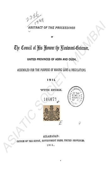 The United Provinces Code consisting of the Bengal Regulations and the local Acts of the Governor General in Council in force in the United Provinces of Agra and Oudh, and the acts of the Lieutenant-Governor of the United Provinces of Agra and Oudh in Council, with lists of the enactments which have been declared in force in or extended to the scheduled districts of the province of Agra by notification under the Scheduled Districts Act, 1874, with a chronological table and an index (in two volumes) |