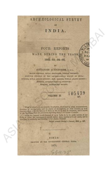 | Subject | : | Archaeological survey reports from India for the years 1862-1865 |