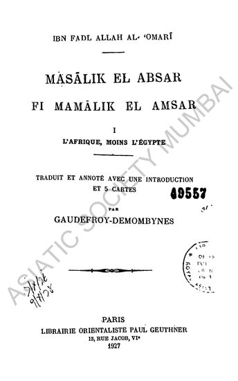 Al-Omari, ibn Fadl Allah; Gaudefroy-Demombynes