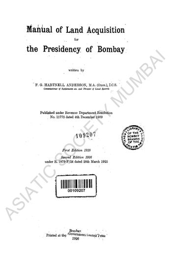 | Publisher | : | Order of the Government of Bombay (Revenue Dept, Resolution No. 4496 of 21st April 1915) |