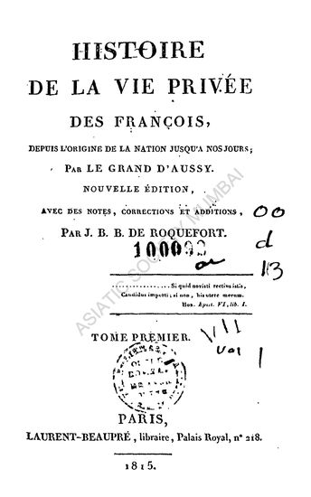 | Author | : | D'Aussy, Legrand Roquefort, J. B. B. de |