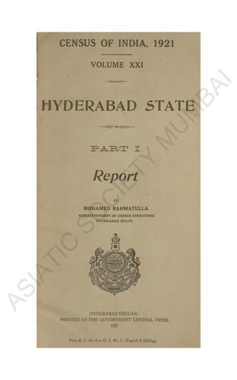 | Subject | : | Census data for Hyderabad State in 1921 including population, education, religion, and other demographic details |