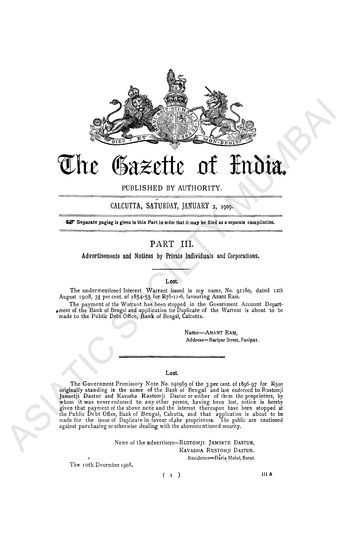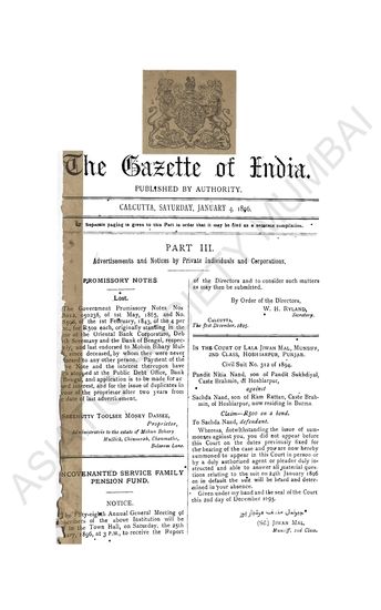 | Subject | : | Advertisements and Notices by Private Individuals and Corporations |