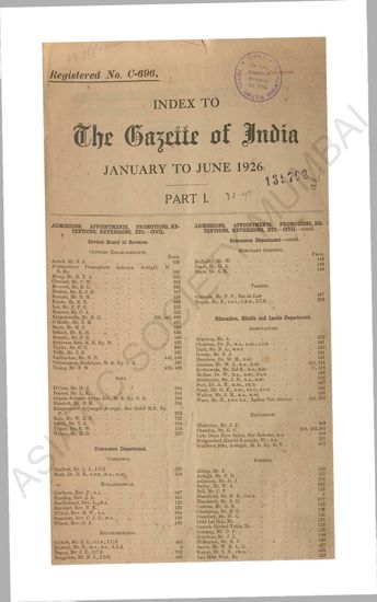 | Subject | : | Index to advertisements and notices by private individuals and corporations in the Gazette of India |