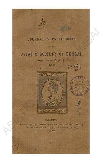 | Subject | : | Memoirs of the Asiatic Society of Bengal |
