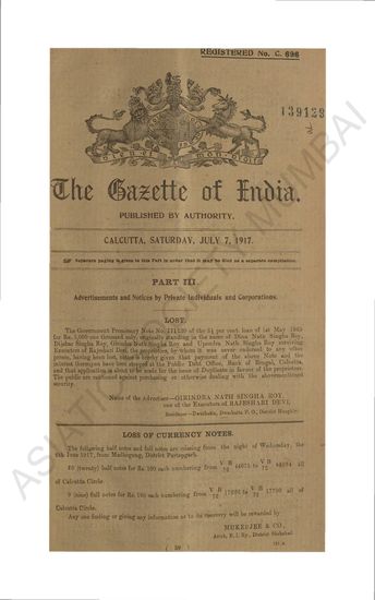 | Subject | : | Government of India Notifications, Appointments, Promotions, Legislative, Home, Judicial, Ecclesiastical, Education, Revenue, Agricultural |