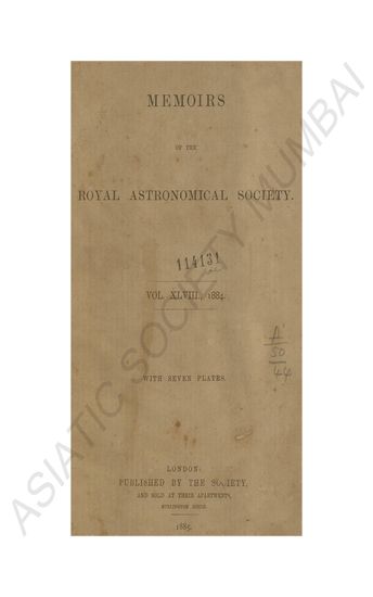 | Subject | : | Astronomy; includes mean north polar distances of Rigel, details of Encke's Comet, and micrometrical measurements |