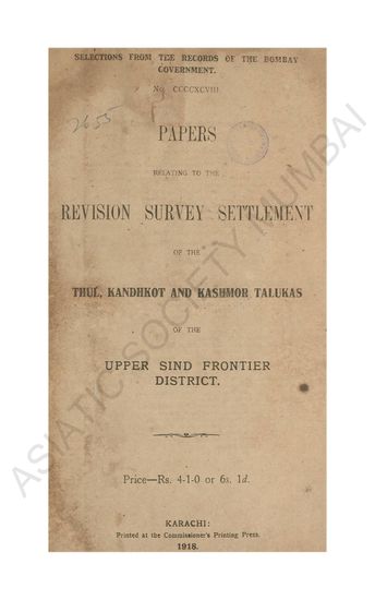 | Subject | : | Survey Settlement Reports of Ahmednagar District, specifically focusing on the Second Revision Settlement of Akola Taluka |