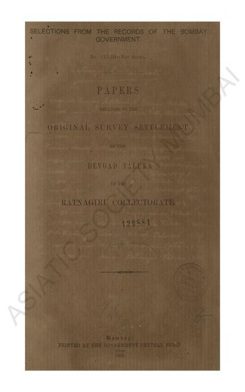 | Subject | : | Original Survey Settlement for the village of Ganeshgaon in the Malsiras Taluka, Sholapur Collectorate |