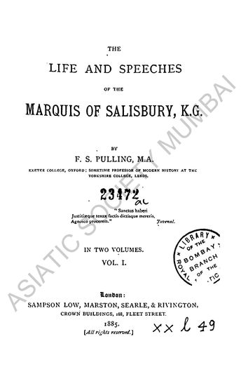 The Life and Speeches of the Marquis of Salisbury, in T ...