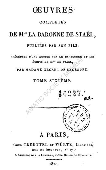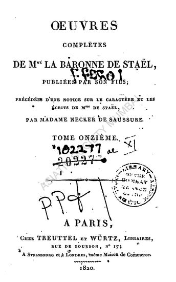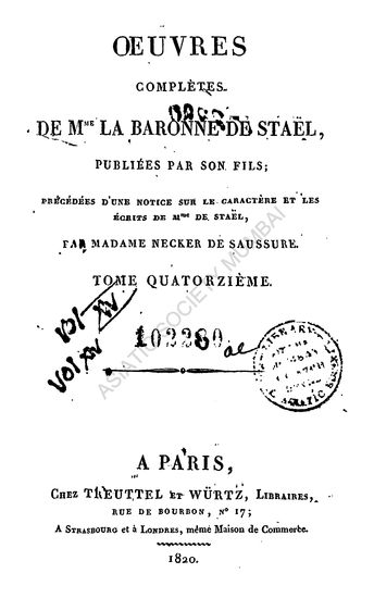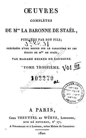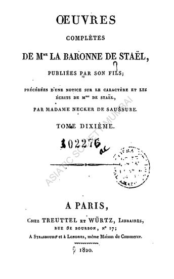 | Author | : | Stael-Holstein, baroness de Saussure, Albertine Adrienne, Necker de |