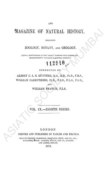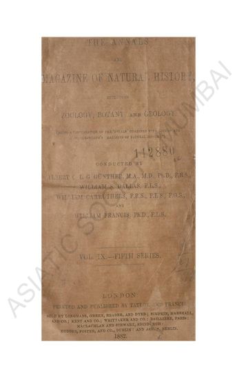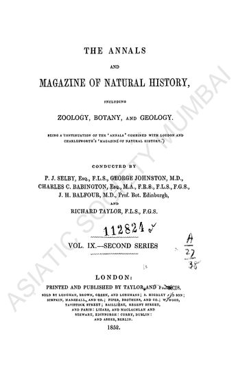 | Subject | : | Natural History, including Zoology, Botany, Mineralogy, Geology, and Meteorology. |