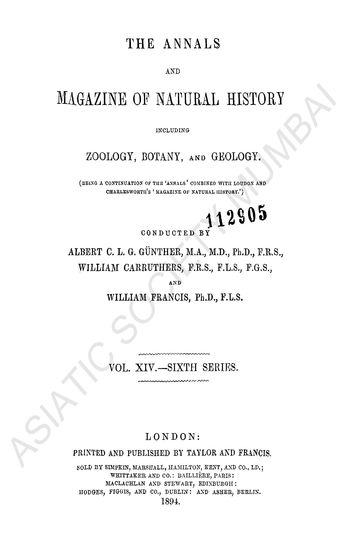 | Subject | : | Natural History including Zoology, Botany, and Geology. |