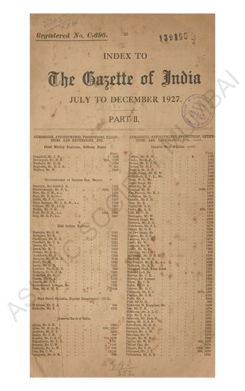 Index to The Gazette of India, July to December 1927, P ...