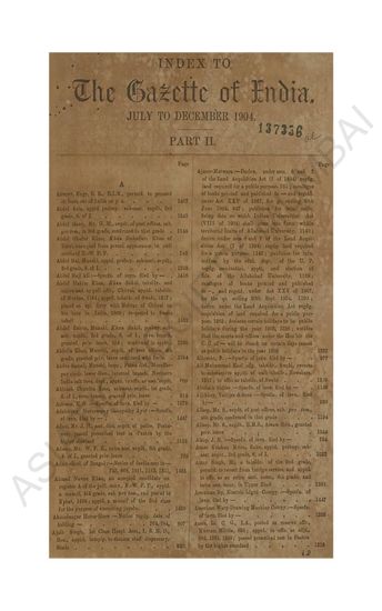 Index to The Gazette of India, July to December 1904, P ...