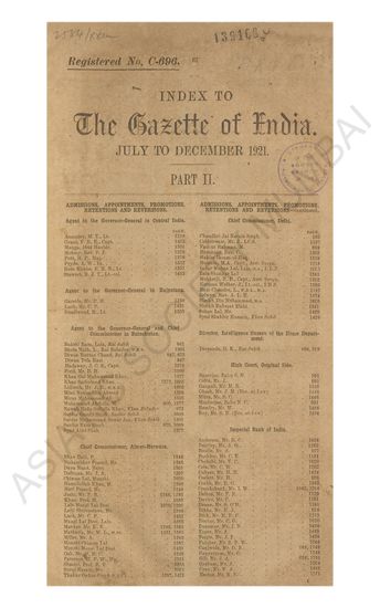 Index to The Gazette of India, July to December 1920, P ...