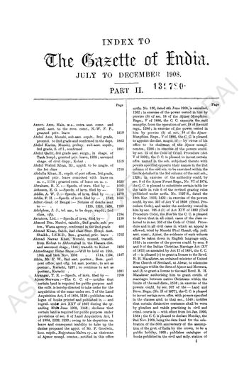 Index to The Gazette of India, July to December 1908, P ...