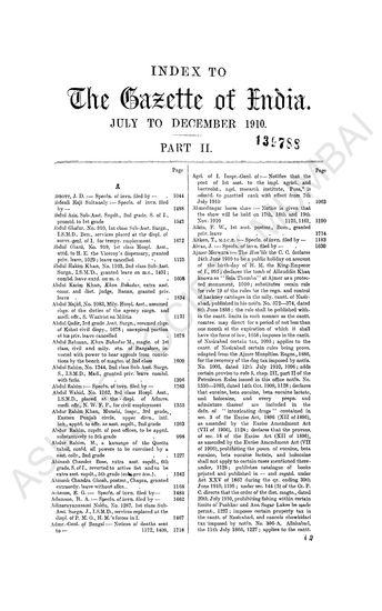 Index to The Gazette of India, July to December 1911, Part II.