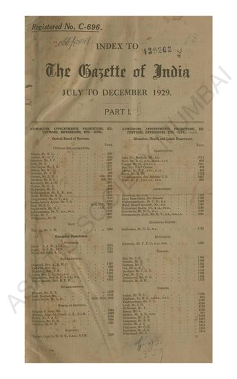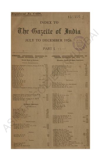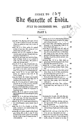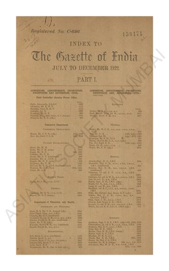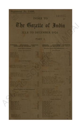 | Subject | : | Government Gazette, Index of Admissions, Appointments, Promotions, Retentions and Reversions |