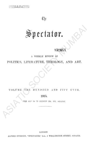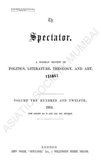 | Publisher | : | John Baker, 'Spectator,' Ltd., 1 Wellington Street, Strand. |