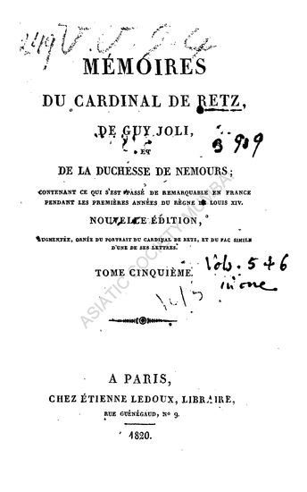 | Author | : | Gondi, Jean Francois Paul, de Joli, Guy |