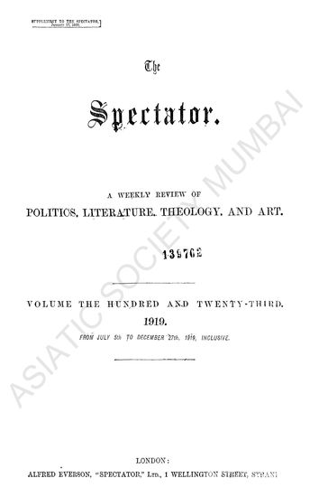 | Publisher | : | Alfred Evesron, 'Spectator,' Ltd. 1 Wellington Street, Strand |