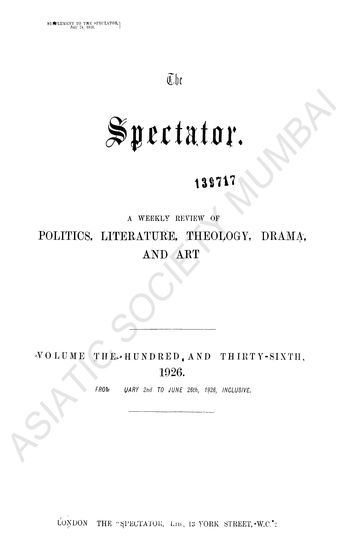 The Spectator, A Weekly Review of Politics, Literature, ...