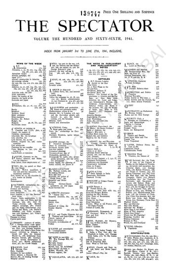 The Spectator, Volume The Hundred and Forty, Sixth, 1931.
