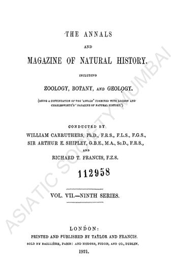 | Subject | : | Natural History including Zoology, Botany, and Geology |