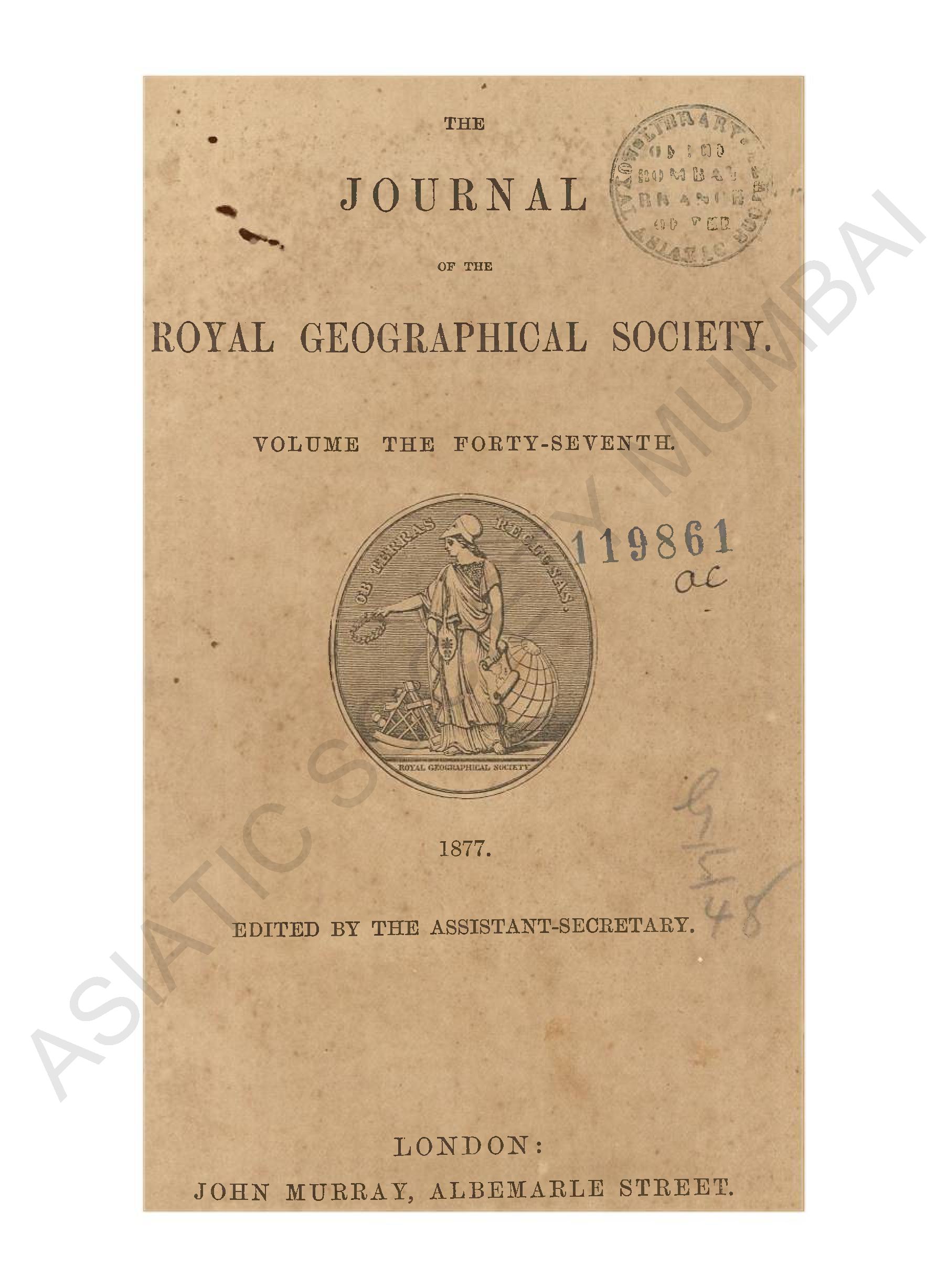 Journal of the Royal Geographical Society. Volume the F ...