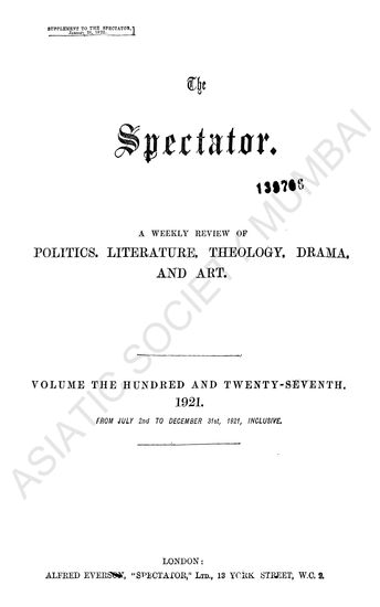 The Spectator, A Weekly Review of Politics, Literature, ...