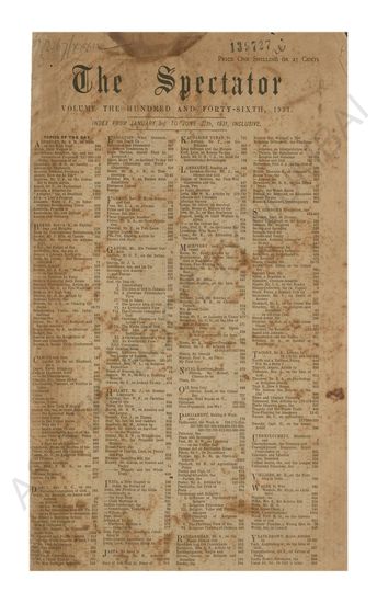 The Spectator, Volume The Hundred and Forty-Seventh, 1931.