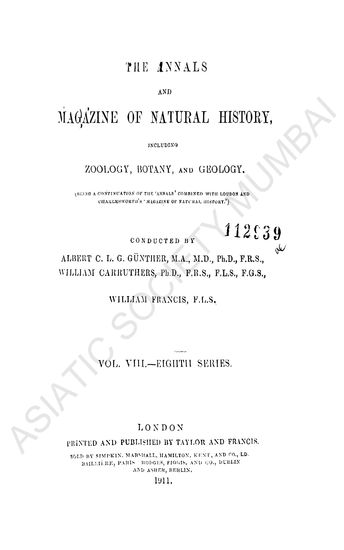 | Subject | : | Natural history, including Zoology, Botany, and Geology |