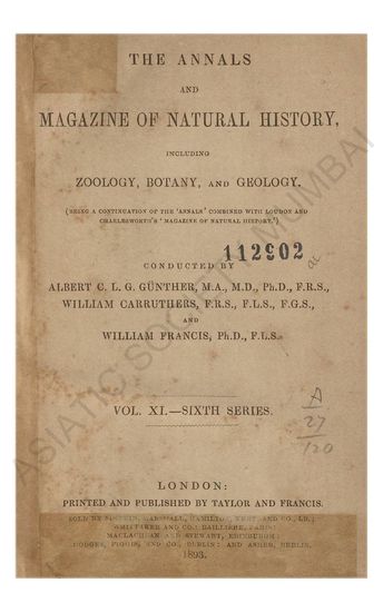 | Subject | : | Natural history, including zoology, botany, and geology |
