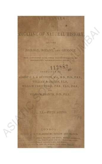 | Subject | : | Natural history; Including Zoology, Botany, and Geology. |