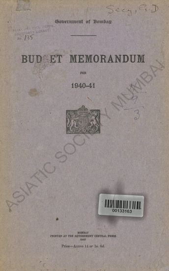 Government of Bombay Civil Budget Estimates for the Yea ...