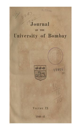 Journal of University of Bombay, Volume IX, 1940-41.