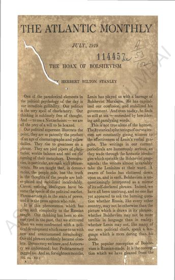 Atlantic Monthly, The Hoax of Bolshevism, July, 1919.