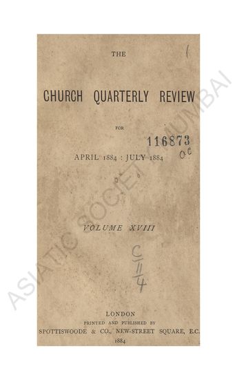 Church Quarterly Review for April 1884 July 1884 Volume ...