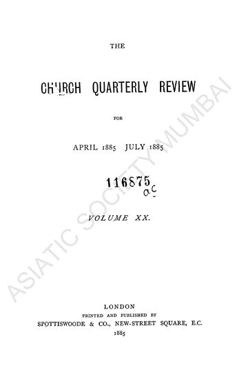 Church Quarterly Review for April 1885 July 1885 Volume ...