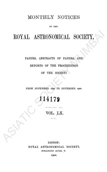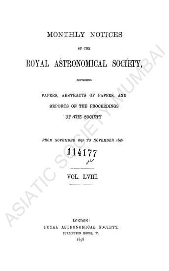 | Publisher | : | Royal Astronomical Society, Burlington House, W. |